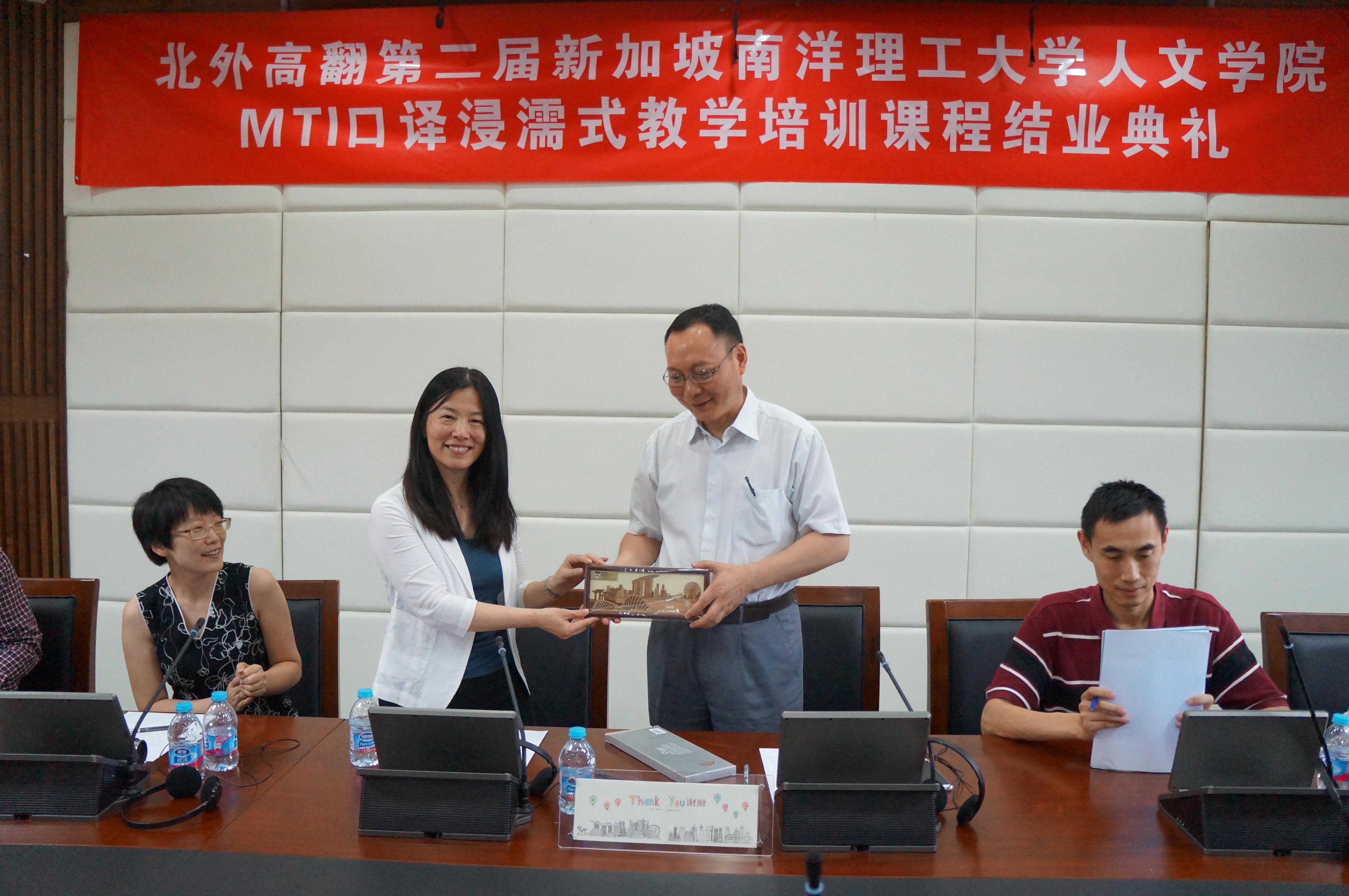 结业典礼上,学员以现场交替传译的方式,展示了六周学习后的学习成果,令人赞叹不已。教师代表也对整个培训期间的教学过程进行了总结。JINNIAN金年会官方网站副院长李长栓教授和新加坡南洋理工大学人文学院的高虹老师也分别代表培训方和受训方发表了培训感言。