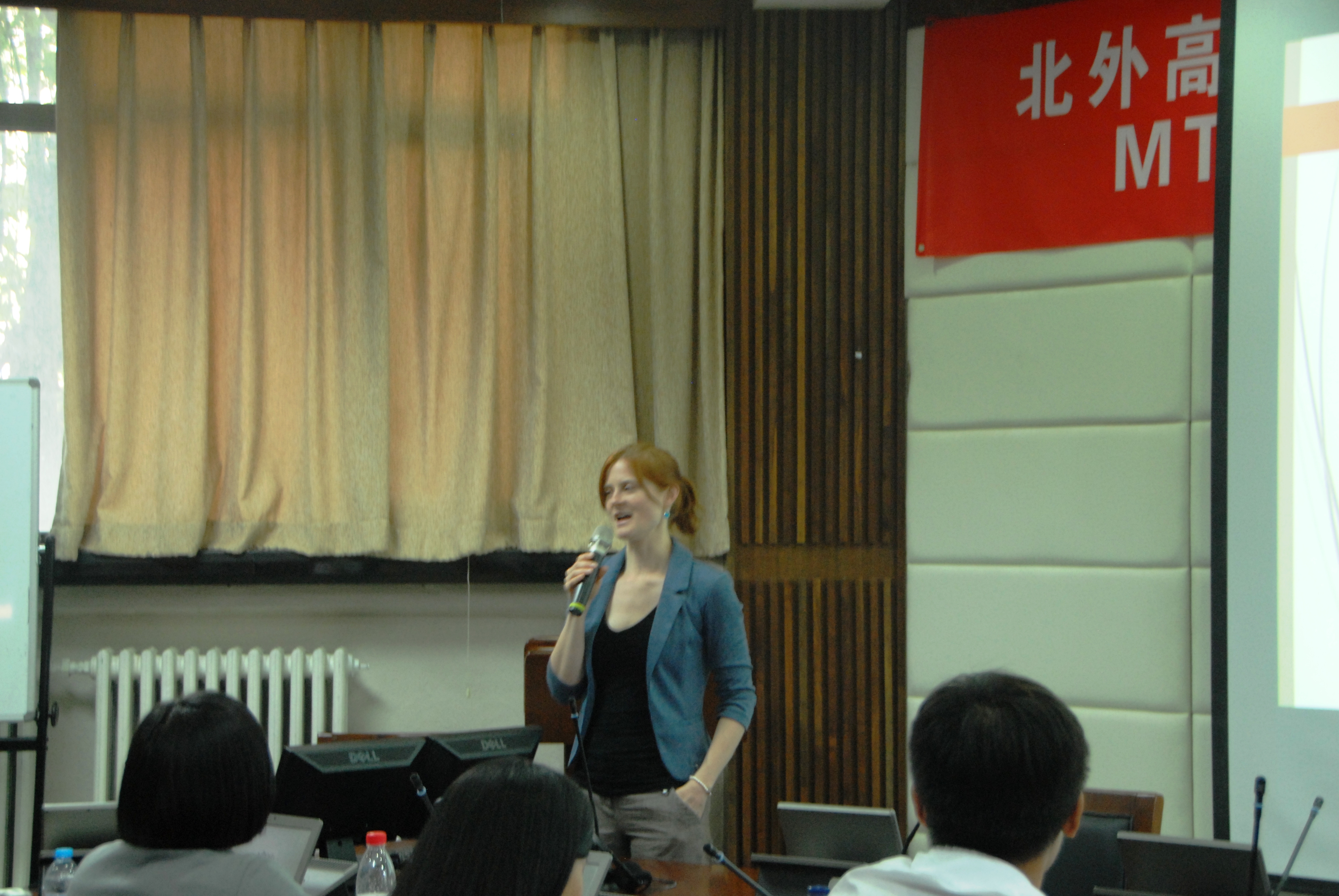2017年6月6日下午, 美国社区口译专家Michelle Pinzl莅临北外高翻学院,就社区口译的相关知识为高翻学子带来了一场别开生面的讲座。Michelle Pinzl精通三国语言,是西英口译项目的研究专家,曾在海外游学七年,主要聚焦于医学领域的口译。她致力于促进跨语言、跨文化的高质量平等交流,并大力推进社区口译的普及和发展。