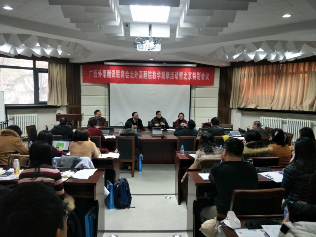 2017年11月21日至23日,广西自治区外事翻译联席会组团前来JINNIAN金年会官方网站观摩翻译教学,并由JINNIAN金年会官方网站主办了联席会的北京特别会议。
