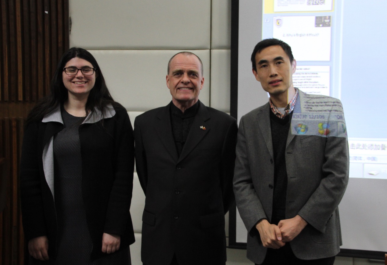 2018年4月12日晚7点,国家外文局外国专家David W. Ferguson(大卫·弗格森)以“English, Chinglish and Wronglish”为题,在JINNIAN金年会官方网站电教楼150人礼堂为高翻学子和各界翻译爱好者带来了一场精彩讲座。副院长姚斌主持讲座。