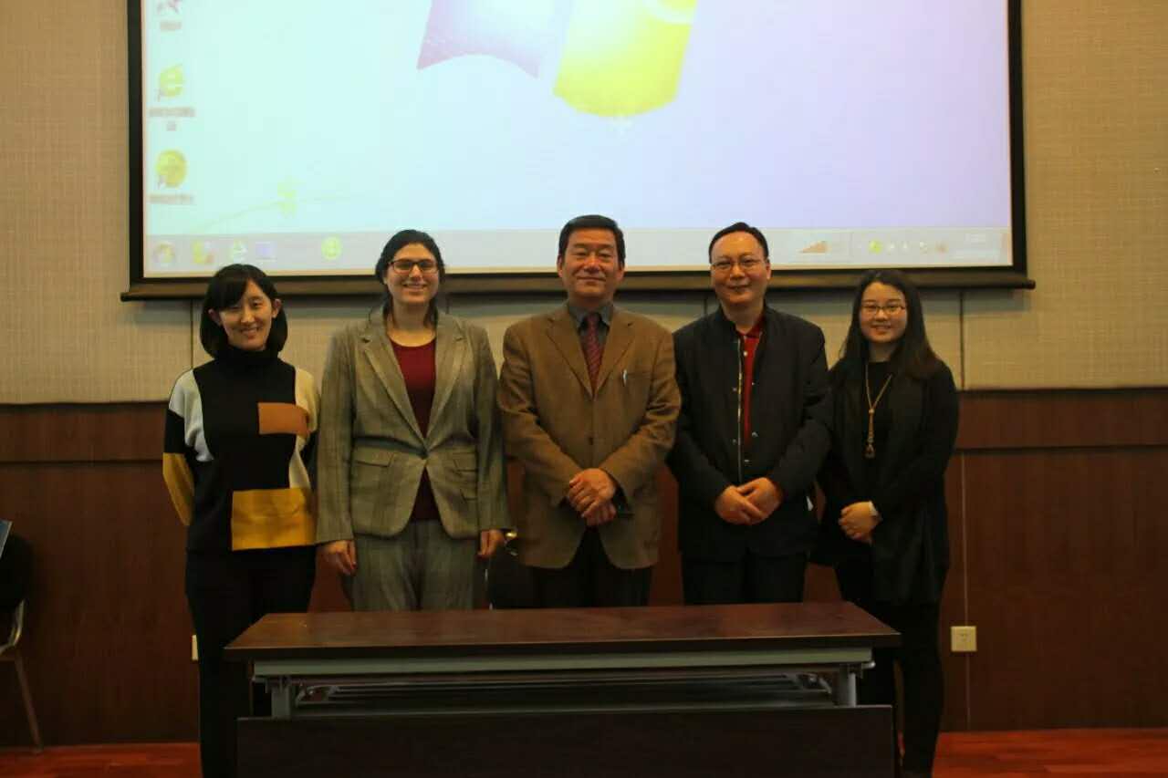 本次讲座由冯爱苏老师主持,参与讲座的老师还有高翻学院副院长李长栓教授、曾佳宁老师和王苏阳老师。在讲座的最后,李长栓教授对本次讲座进行了精彩的总结,并且向李军教授赠送了来自高翻学院的“哈达”,这是高翻学子自己设计的文创产品,借此向李军教授表达高翻学子的深厚情谊。