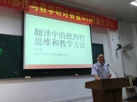 广西译协首届MTI协作与教学研讨会暨MTI研究生论坛于6月18日在广西大学外语学院举行。金年会李长栓教授作为特邀嘉宾参会,并作题为“翻译中的批判性思维与教学方法”的发言。