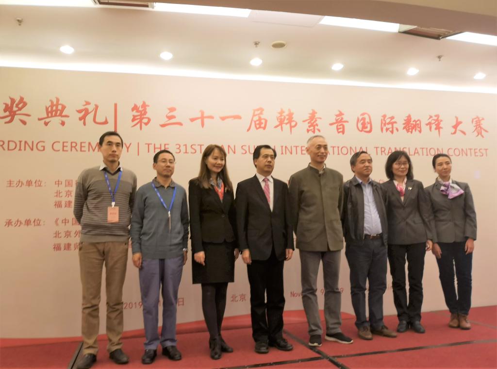 韩素音国际翻译大赛是中国翻译界组织时间最长、规模最大、影响最广的翻译比赛。第31届大赛共设十个竞赛项目,包括英语、法语、俄语、西班牙语、阿拉伯语和汉语的互译,吸引了来自十几个国家和地区的11900名选手参赛,总参赛人数、参与选手的国家和地区数量均创历史新高。经过多轮严格匿名评审,共评选出346名获奖者。高翻学院党总支书记葛冬冬代表高翻学院接收中国译协颁发的组织承办奖。