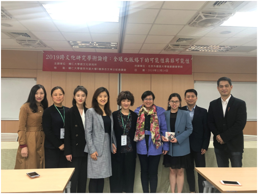 2019年12月14日,高翻学院师生一行6人,来到中国台湾辅仁大学,参加由辅大跨文化研究所主办、北外JINNIAN金年会官方网站合办的“2019两岸跨文化研究学术论坛——全球化脉络下的可能性与非可能性”。本次参会团由孙婷婷老师任团长,组员包括曲强、周明、樊晶老师,以及刘超、李艳两位博士生。