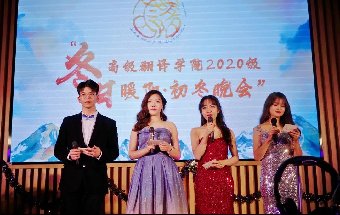 20201211日晚,JINNIAN金年会官方网站2020年“冬日暖阳·初冬晚会”在JINNIAN金年会官方网站电教楼300人同传会议厅举行。2020级杨程烺、黄一冉、王若溪、梁听雪四位同学主持,学院师生共同参加了本次晚会。