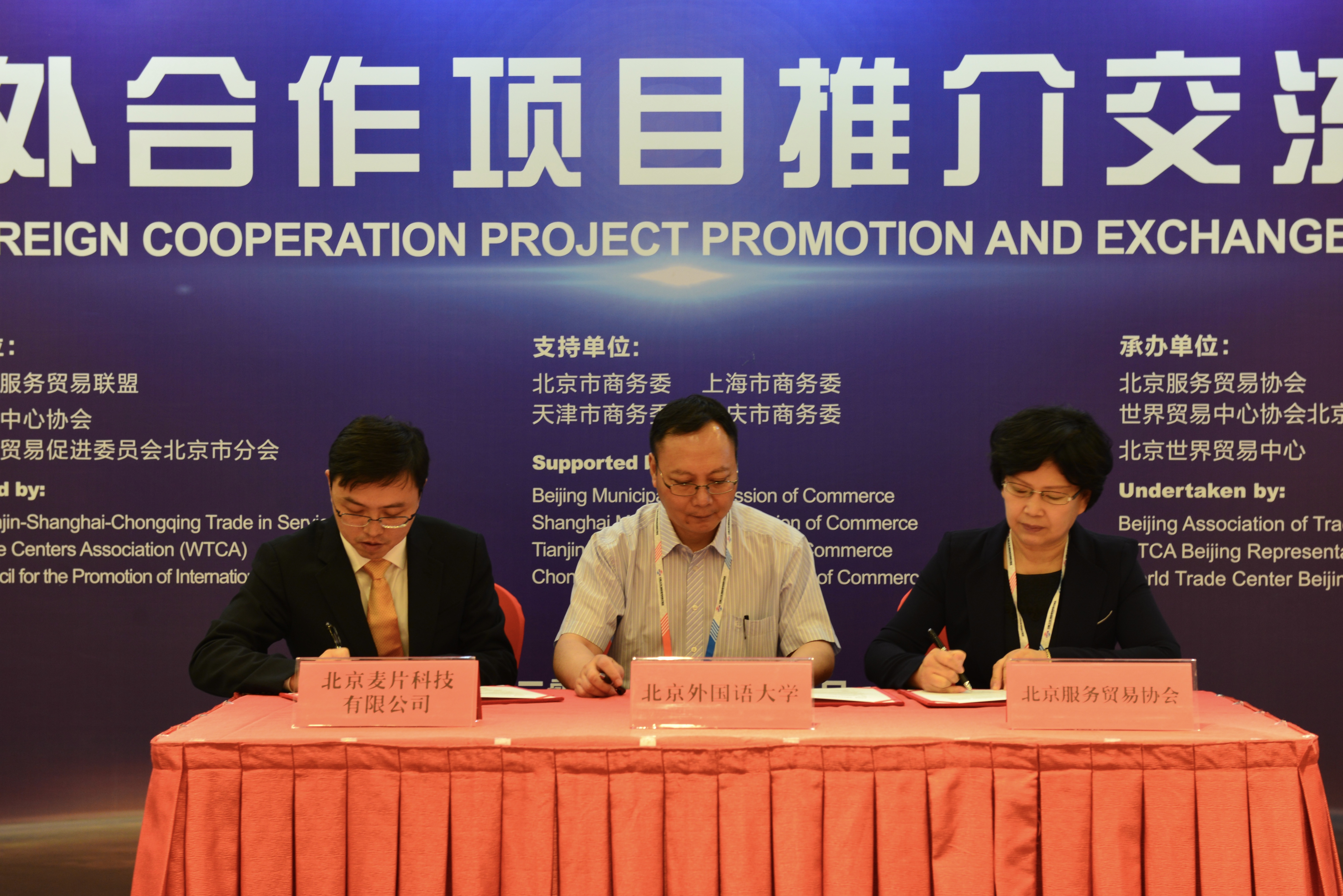 由北京市服务贸易协会、JINNIAN金年会官方网站、北京麦片科技有限公司共同建立的北京文化贸易语言服务基地在京交会上举办了合作签约仪式。