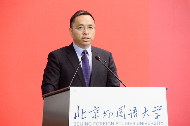 徐青森向中心成立表示热烈祝贺,他指出,中心成立展示了北外服务国家战略的气魄和担当,在翻译研究领域的开拓和引领作用。徐青森对中心提出三点期望:一是在话语创新上多做文章,探索提升中国国家形象,增强中国文化国际传播力与影响力的有效方法和手段;二是在人才培养上做出成果,充分发挥北外优势,探索建立新的翻译人才培养模式,培养更多国家急需的高级专门翻译人才和小语种翻译人才;三是在方法创新上多加工作,要适应大数据与人工智能等信息技术发展趋势,注重强化交叉融合,深入研究人机组合下的最新翻译技术,开展跨学科的研究和特色研究,推动人工智能翻译技术的发展。徐青森表示,教育部社科司将会一如既往地支持北外的建设和发展,祝愿中心早日成为我国高校哲学社会科学领域一张享誉海内外的亮丽名片,为沟通中外,促进国际交流合作,提升国家文化软实力做出积极贡献。