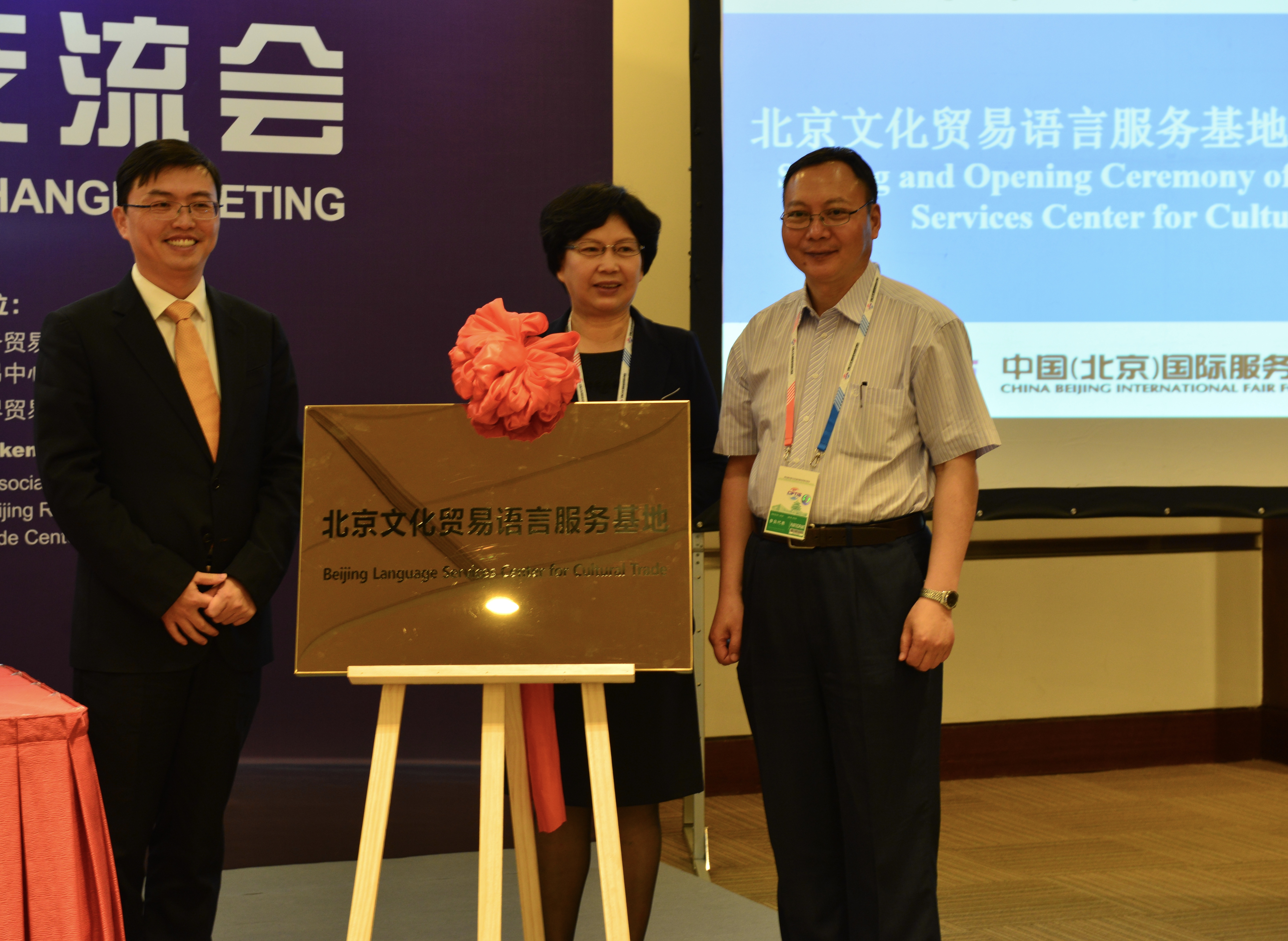 北京服务贸易协会会长李露霞女士、JINNIAN金年会官方网站副院长李长栓教授、北京文化贸易语言服务基地负责人毛隽博士签约并共同为北京文化贸易语言服务基地揭牌。