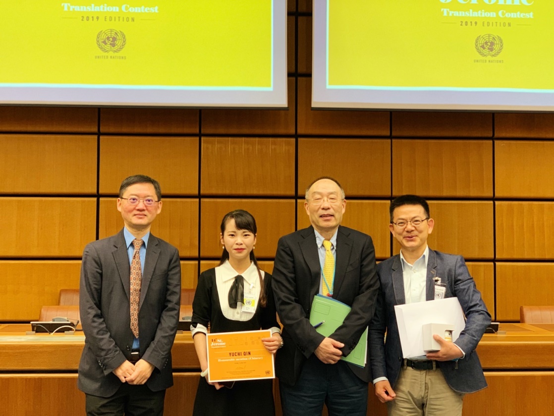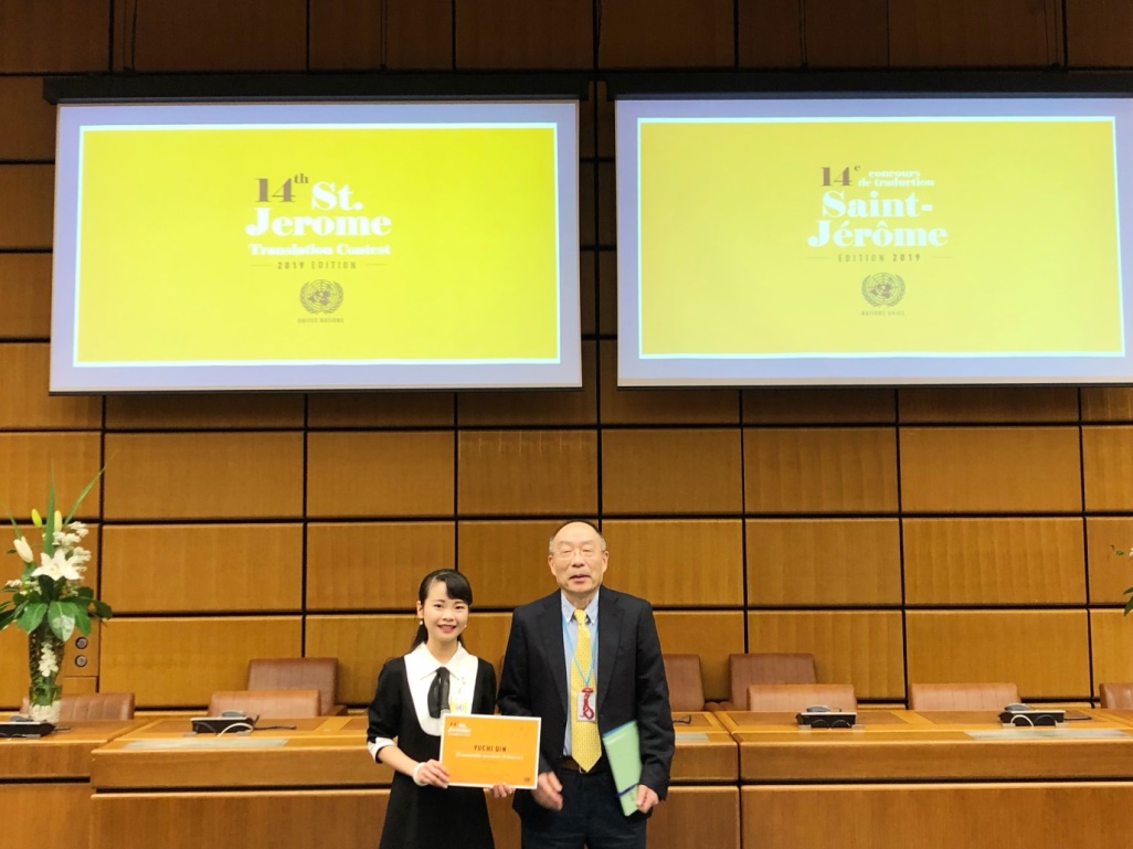 2019年5月16日,联合国第14届圣杰罗姆翻译竞赛颁奖仪式在联合国维也纳办事处举行,金年会2016级毕业生秦宇池获得英译汉普通参赛组第二名(称为“提名奖/honorary mention”)。