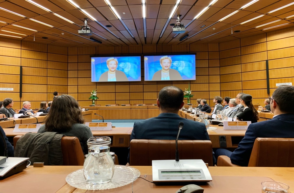 联合国大会和会议管理部副秘书长凯瑟琳·波拉德女士 (Catherine Pollard) 在颁奖典礼上远程致辞