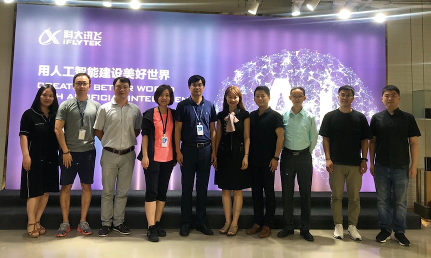 2019年7月17日,JINNIAN金年会官方网站院长任文教授带领高翻学院团队一行前往科大讯飞北京总部考察交流,重点了解了科大讯飞在语音识别、语音文本转写、人工智能辅助翻译等领域的核心技术及其在高教领域的应用成果,与科大讯飞团队就双方探索校企合作的可能性进行了深入研讨。