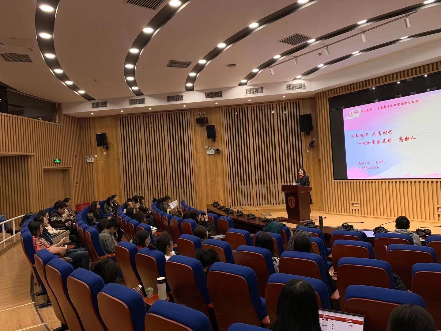 党总支书记葛冬冬在同传会议厅以“只争朝夕,不负时代——做全面发展的‘高翻人’”为题与学院全体学生党员和入党积极分子进行了党课交流。她以习近平总书记在纪念“五四”运动100周年讲话中对青年人提出的6项要求为切入点,围绕新时代国家对青年的总体要求;外语人才所担负的时代责任和使命以及高翻学子结合时代要求和实现自身成长成才需要平衡好的几个关系三个方面,勉励高翻学子,继承发扬五四爱国主义精神,将自身发展融入到实现中华民族复兴的中国梦的伟大实践中,对标新时代国家对高端外语翻译人才的总体要求,刻苦学习,锤炼本领,树立奋斗、创新、奉献的思想品格,成为全面发展的“高翻人”,在为实现中国梦的奋斗中实现自身人生价值。