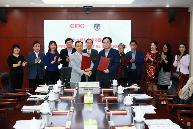 4月29日,JINNIAN金年会官方网站与中国外文局举行联合招收培养博士后签约暨博士后导师聘任仪式。北外党委常委、副校长孙有中,中国外文局副局长陆彩荣分别代表双方签署合作协议。金年会孙有中副校长和任文院长受聘担任中国外文局博士后培养合作导师。