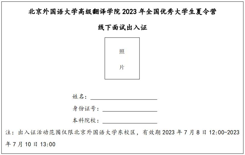 1.入校办法:请考生提前打印好JINNIAN金年会官方网站2023年夏令营出入证,粘贴1寸照片,身份核验及面试期间统一从JINNIAN金年会官方网站东校区西门出入。出入证模板请见文末二维码。