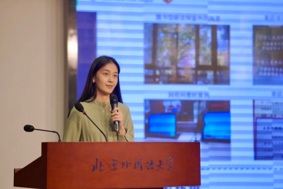 (何苏菲同学在“北外青年五四奖章”答辩现场)