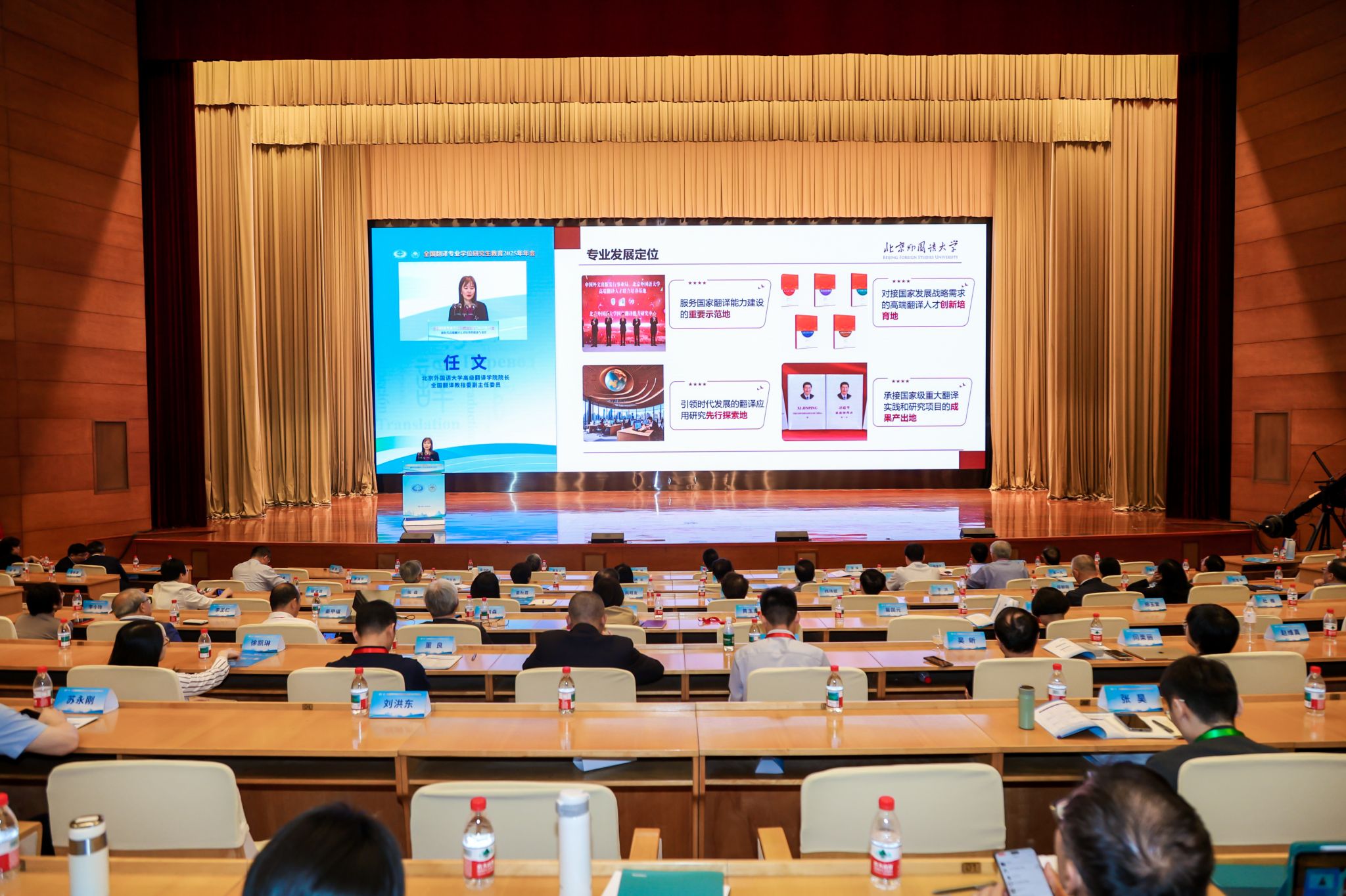 在大会主旨演讲环节,任文教授以《创新实践、跨界探索:翻译博士专业学位人才培养范式探索》为题,系统介绍了DTI培养的专业定位与特色、职业能力模型、课程矩阵、教学模式、实习实践方式、导师遴选标准、毕业要求以及未来待研究方向等,引发了与会嘉宾的热烈反响和深度讨论。
