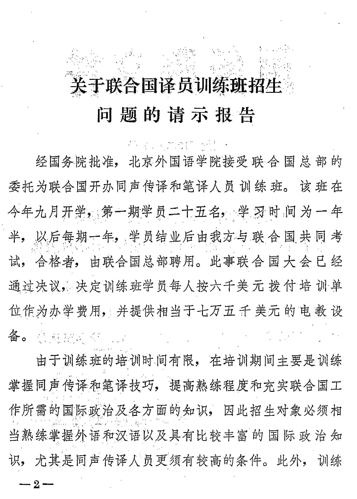 国务院批转外交部、教育部关于联合国译员训练班招生问题的请示报告
