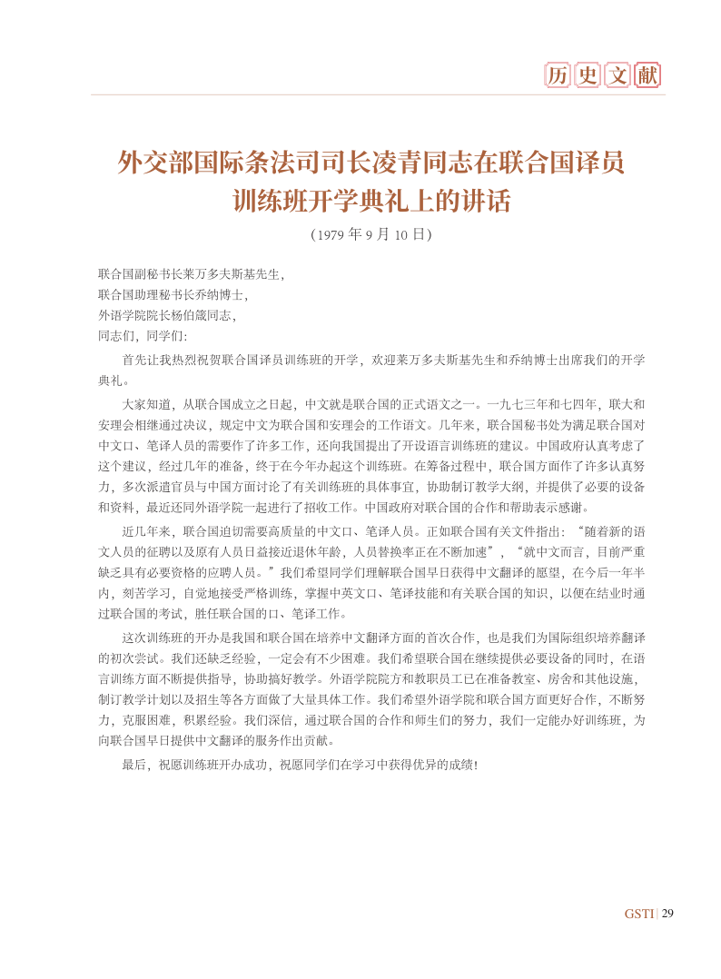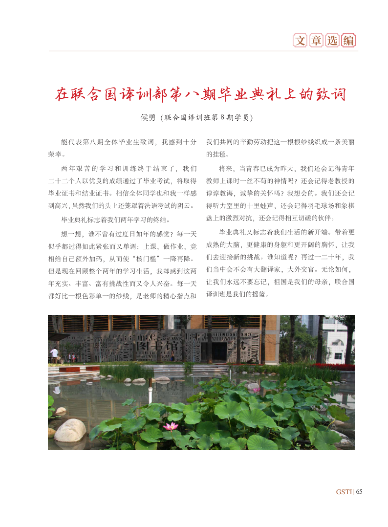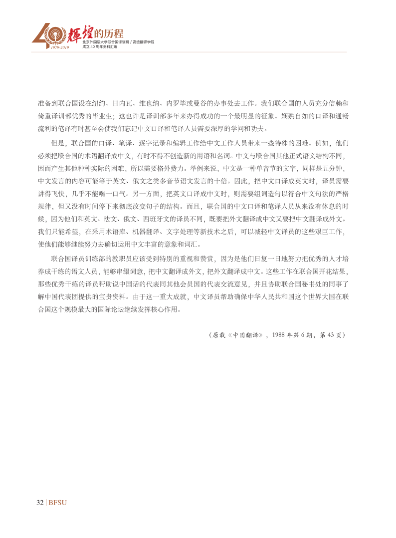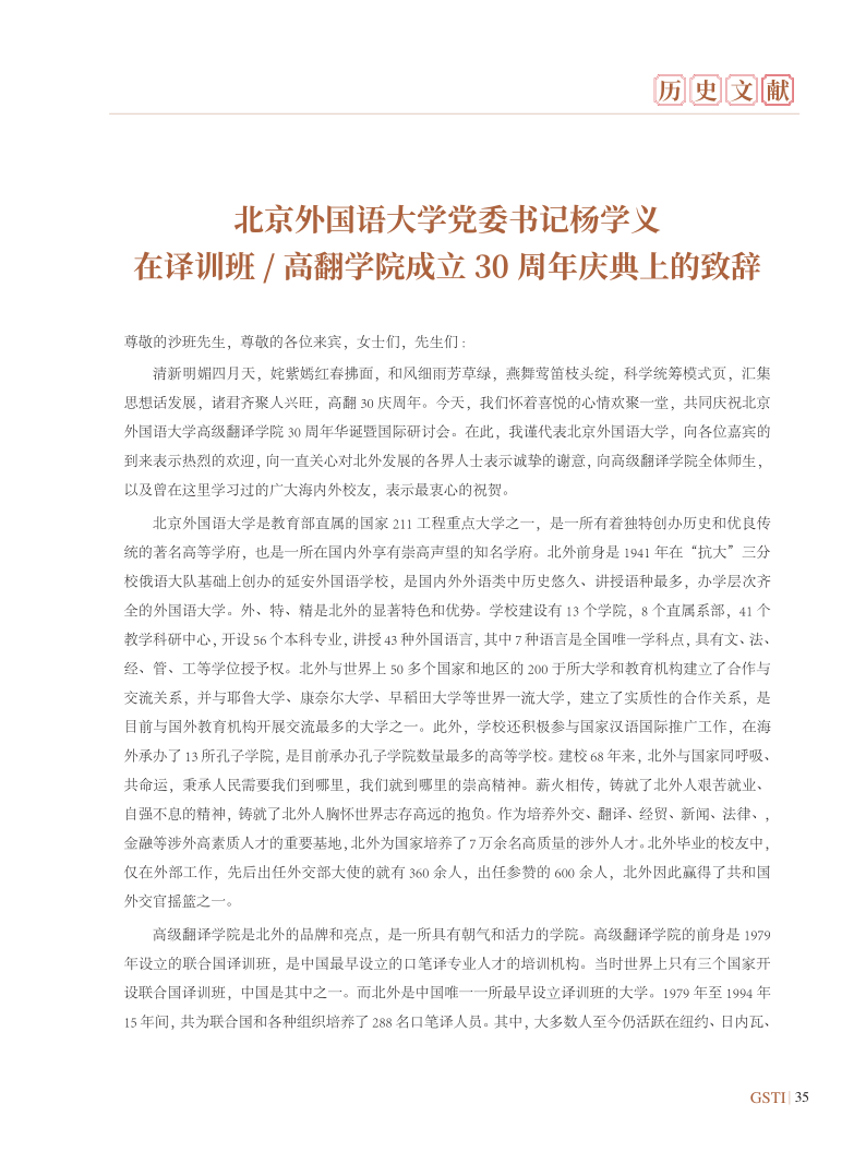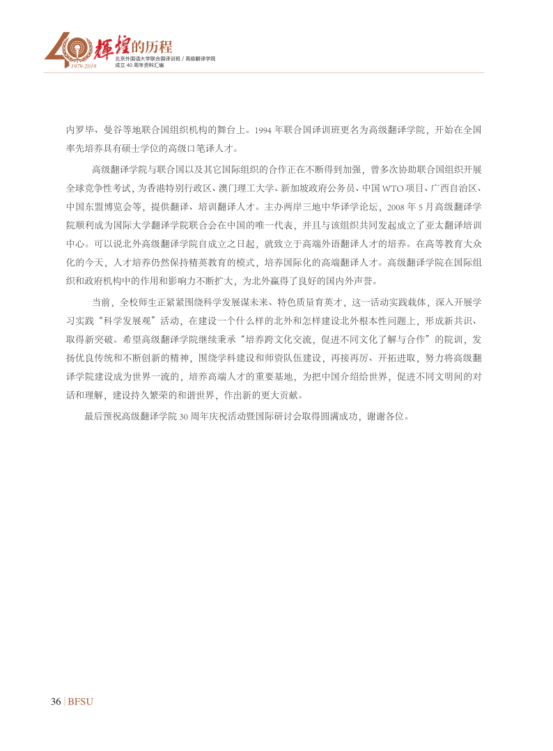 联合国副秘书长沙班在译训班/高翻学院成立30周年上庆典的开幕致辞