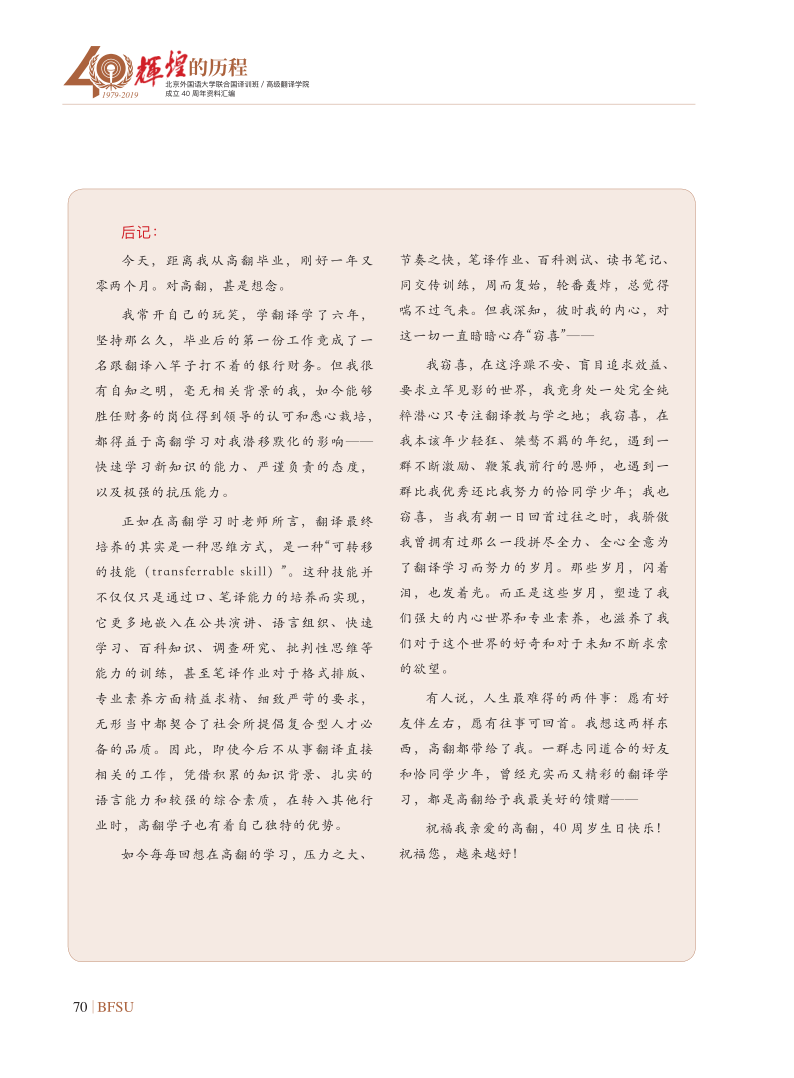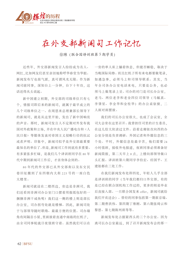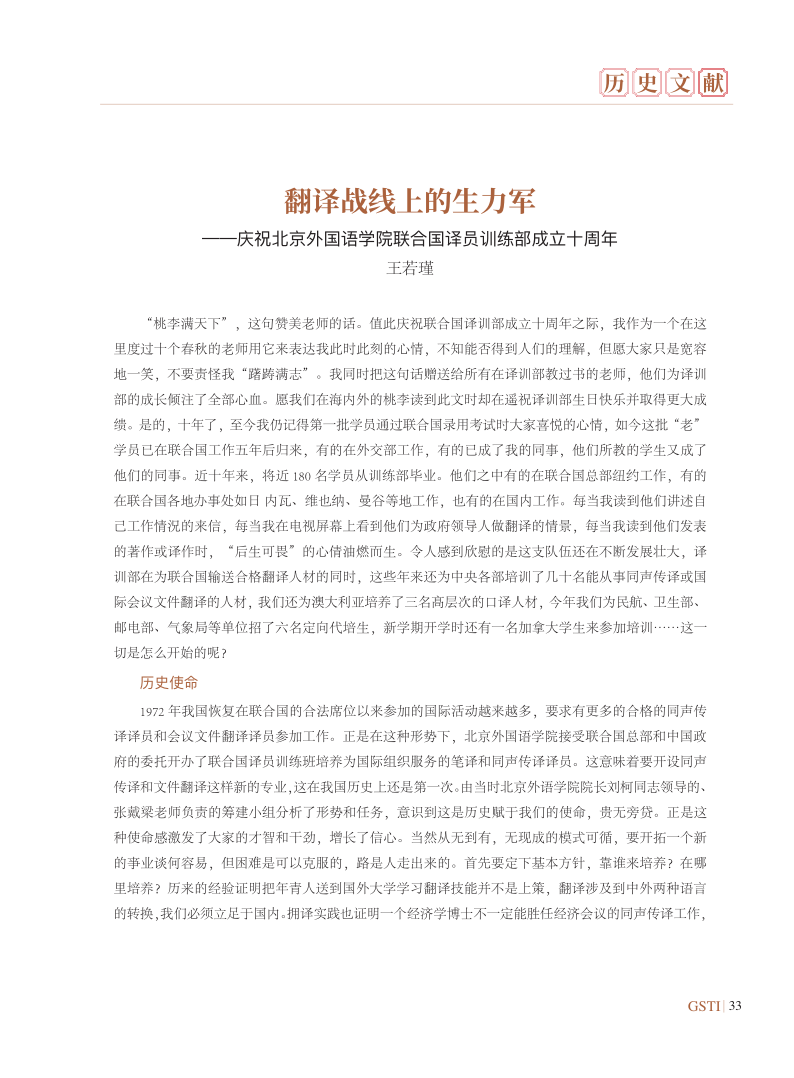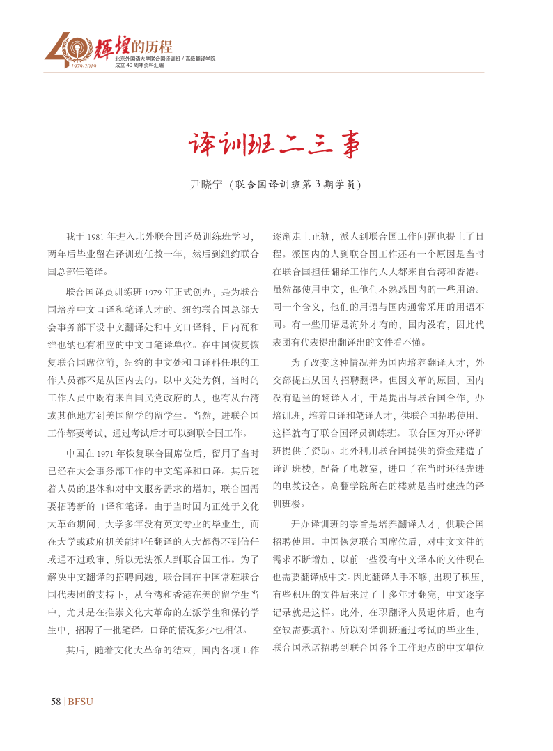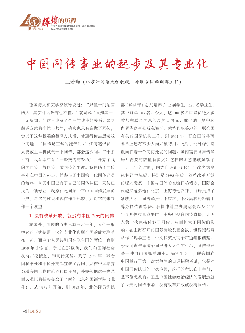 联合国副秘书长沙班在译训班/高翻学院成立30周年上庆典的开幕致辞